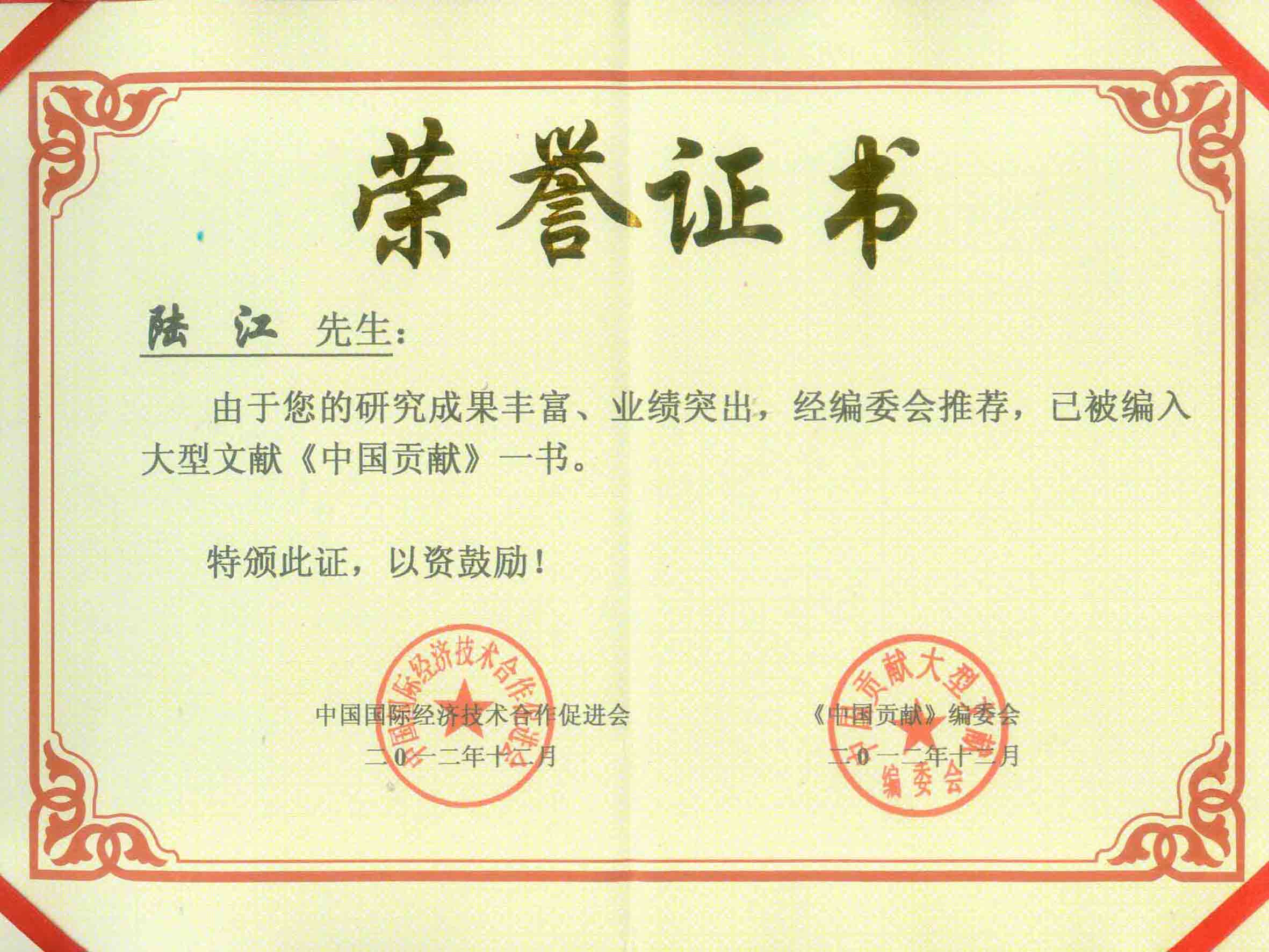 陸江的論文獲一等獎(jiǎng)榮譽(yù)證書-- 陸江論文獲創(chuàng)新論文獎(jiǎng)牌